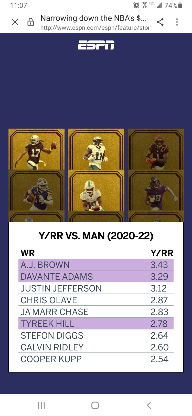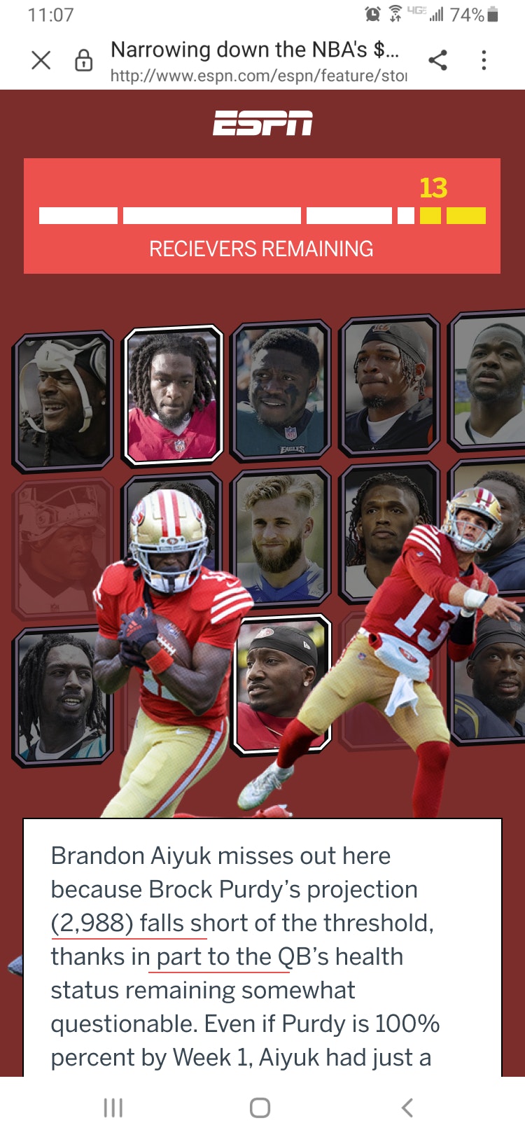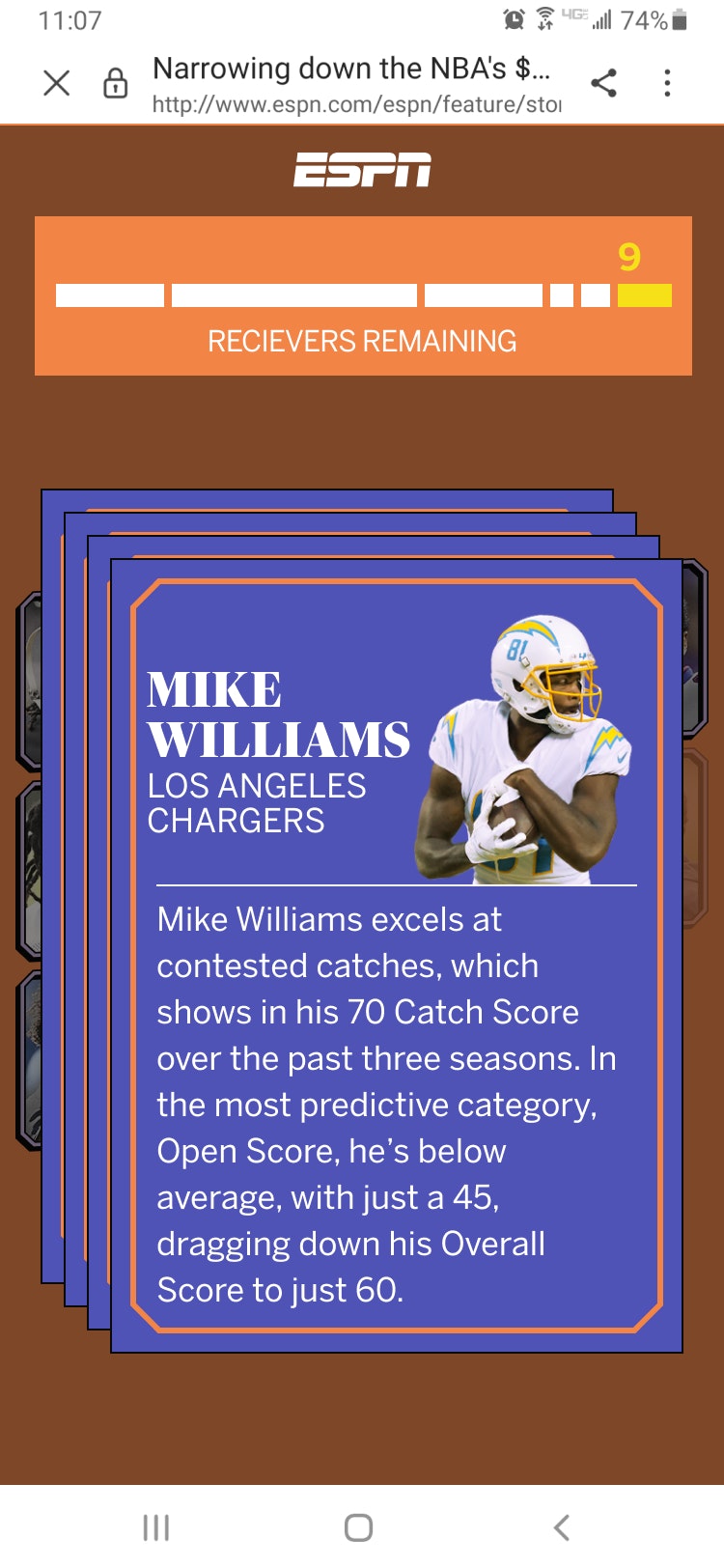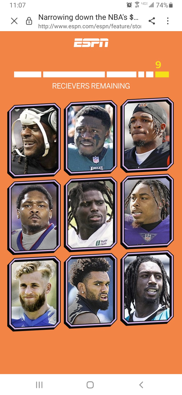 But how do we bring that larger-than-life player into the browser, and tell the story of almost 100 receivers and their chances to break this decade-long record? Well, it takes some clever design, brilliant copy, and a lot of exciting-to-scroll scrolling that takes your from cut to cut, as we dwindle down to a list of 9 absolute beasts.