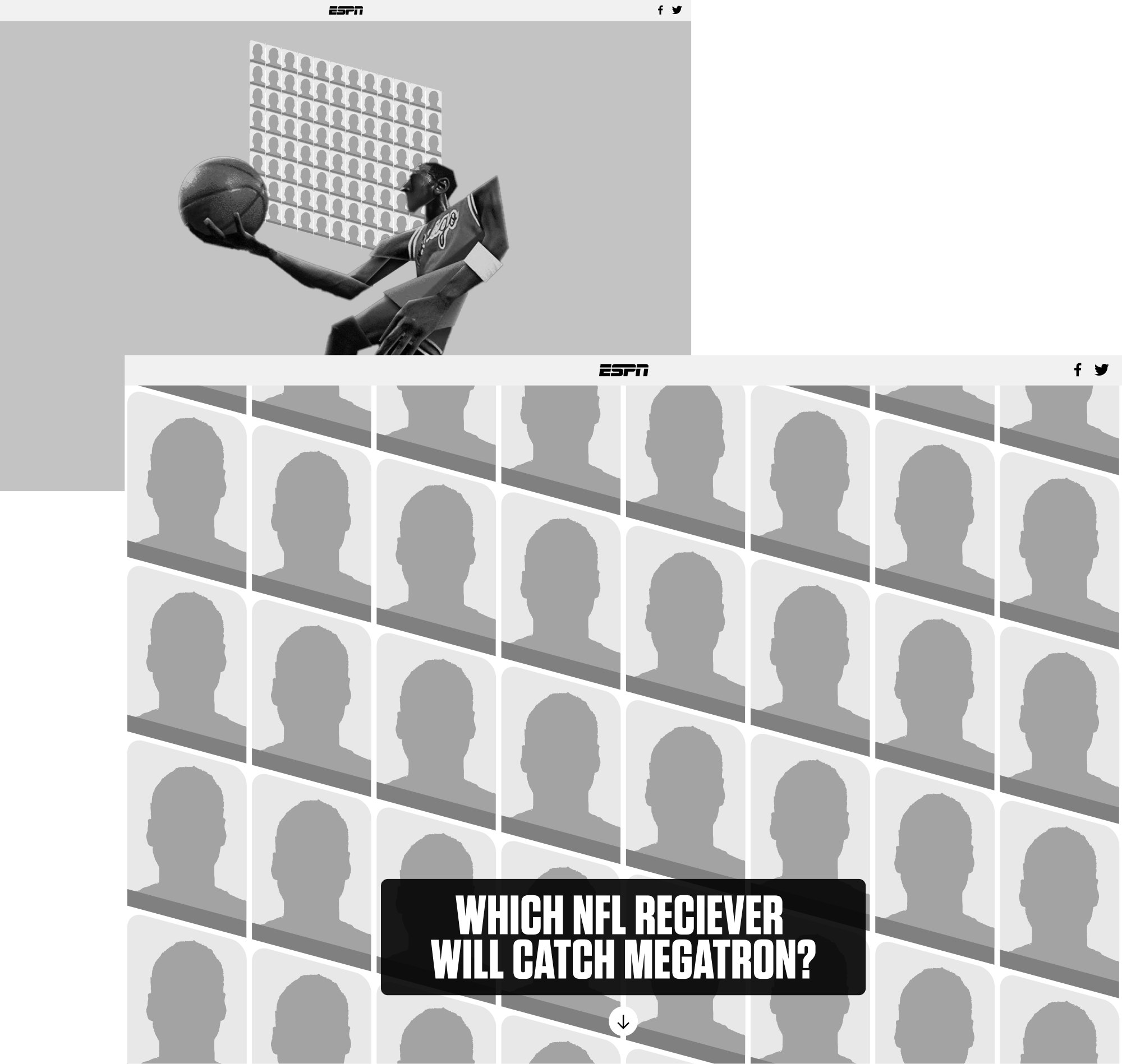 I teamed up with the unbelievable team at ESPN to concept different methods of interaction and animation, as well as approaches to overcome the hurdle that was mass—96 players. data that goes with each, multiple criteria and cuts, all without losing the user as the dwindle down.