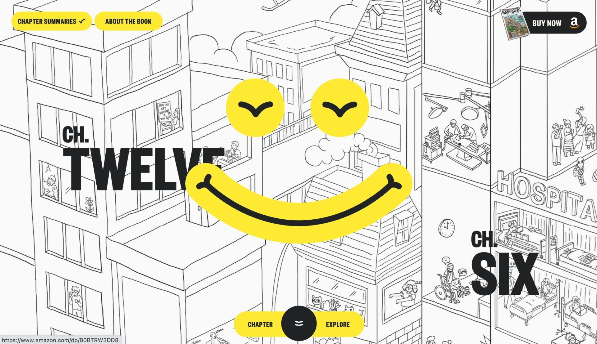 Since this book was about happiness, we felt compelled to pull smiles through everything—hover states, page bends, and even by causing the audio player to smile at you as you listen to chapters. Hopefully this also puts a grin on humans' faces, too.
