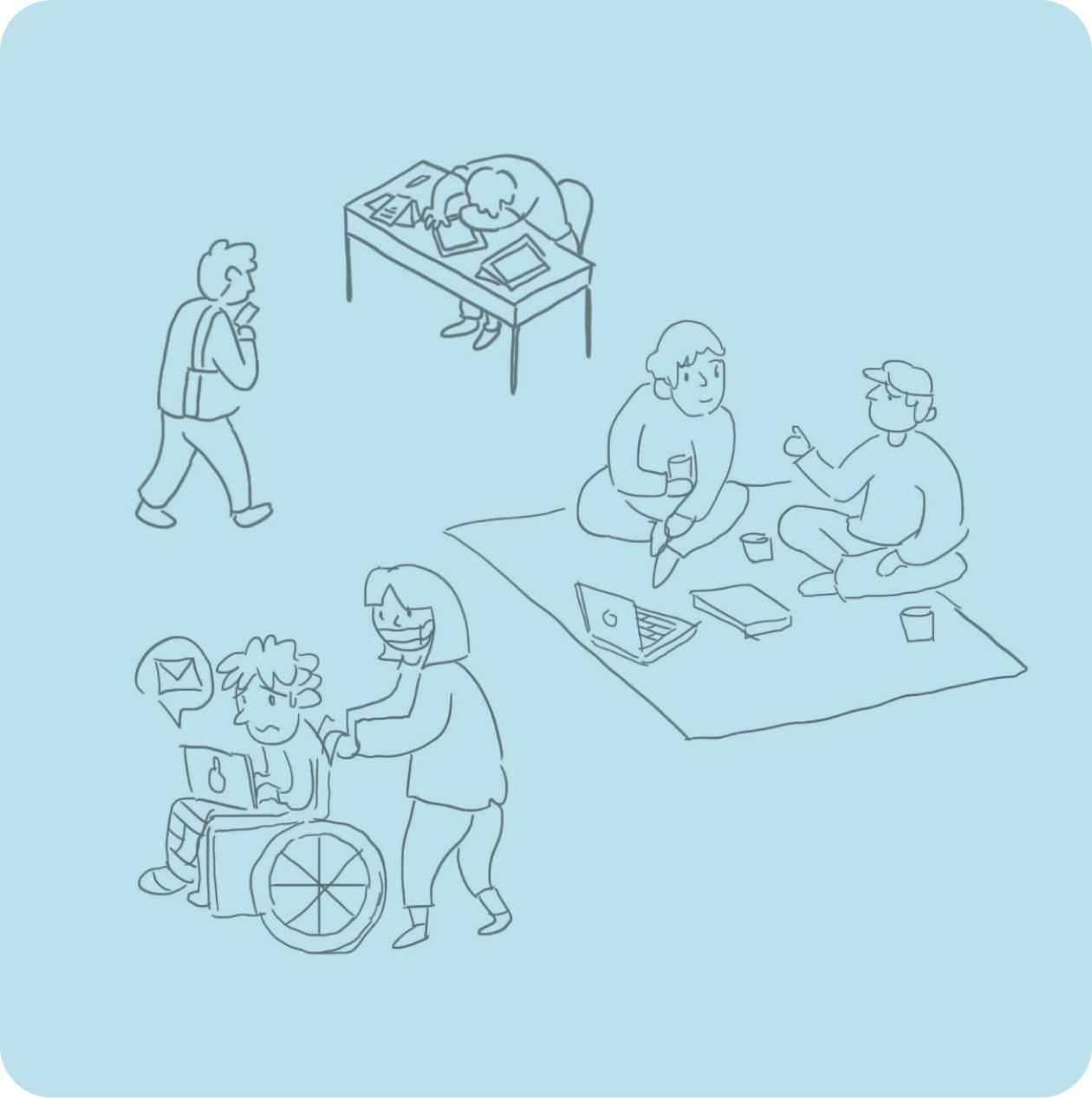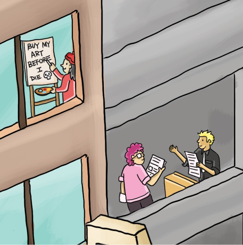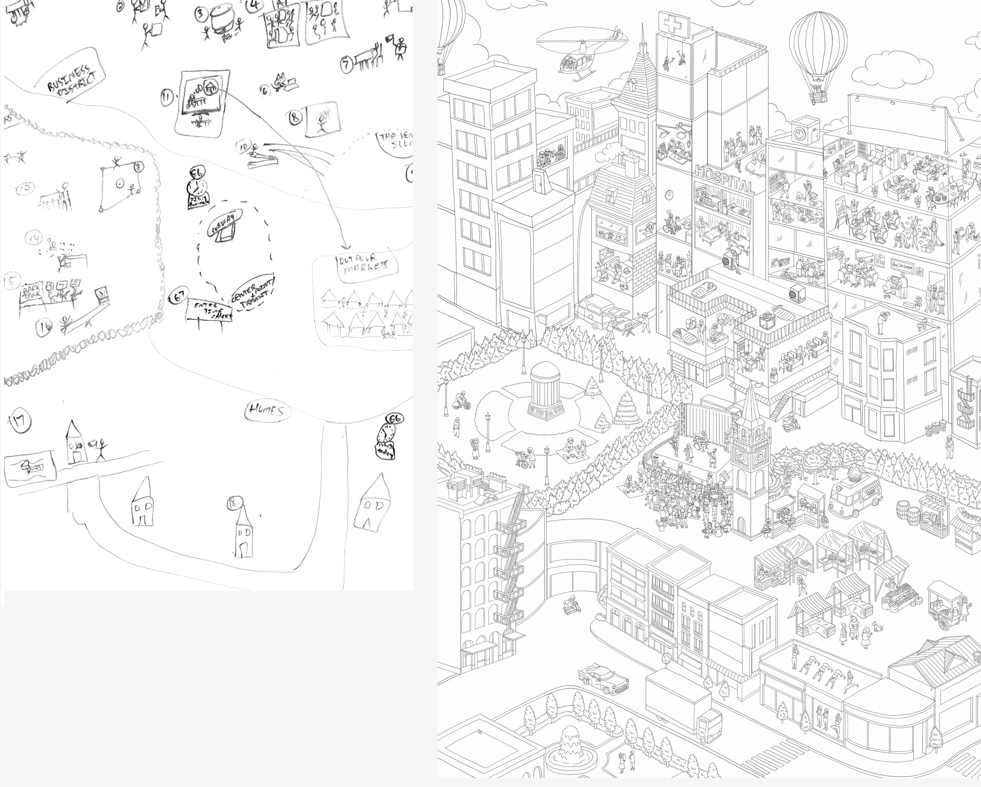 The art was first conceived as larger ideas on a whiteboard, then illustrator Aaron Yeo helped take it from sketch to line art to colored masterpiece.
